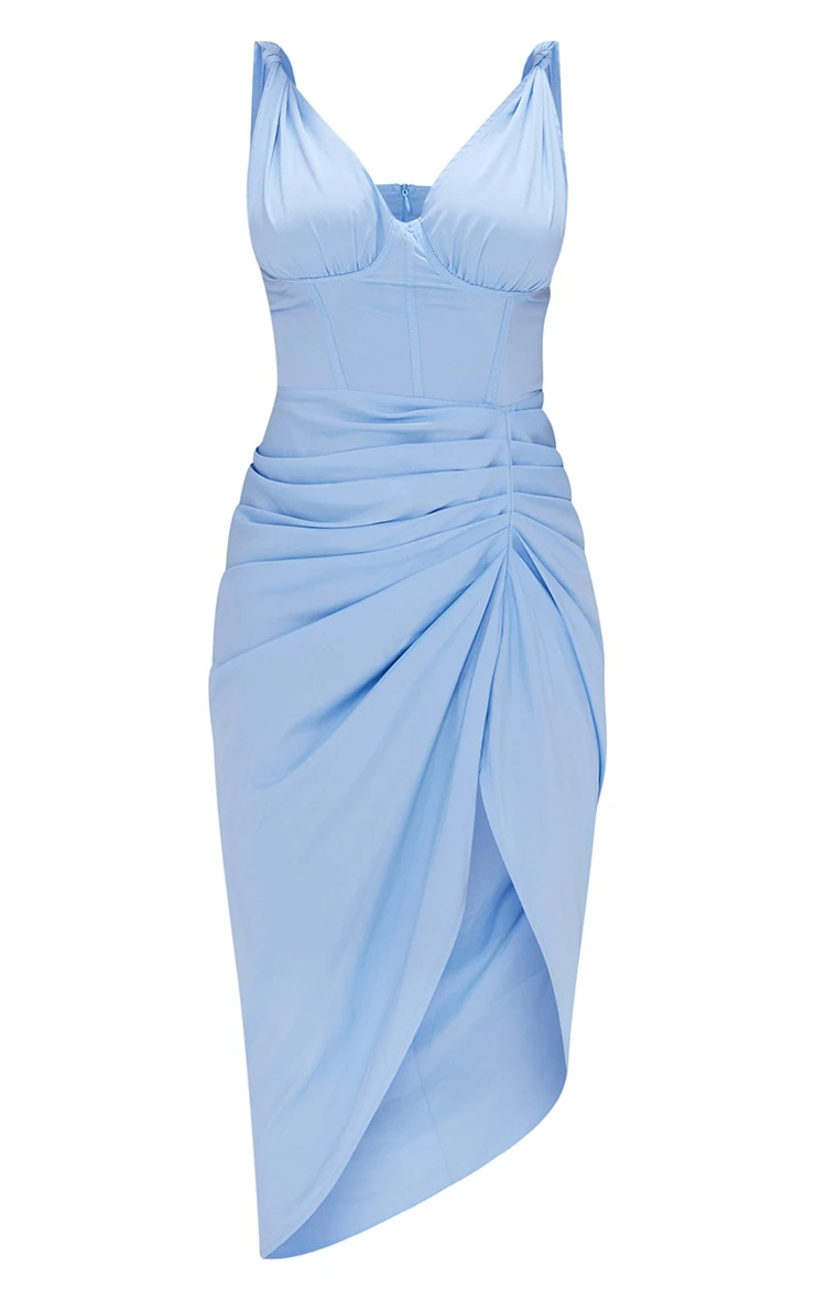 We love pastel hues and this midi dress is perfect for the new season doll. Featuring a baby blue material with a corset design, gathered skirt detailing and side split, it is perfect. Wear with your fave heels and minimal accessories for a chic finish.