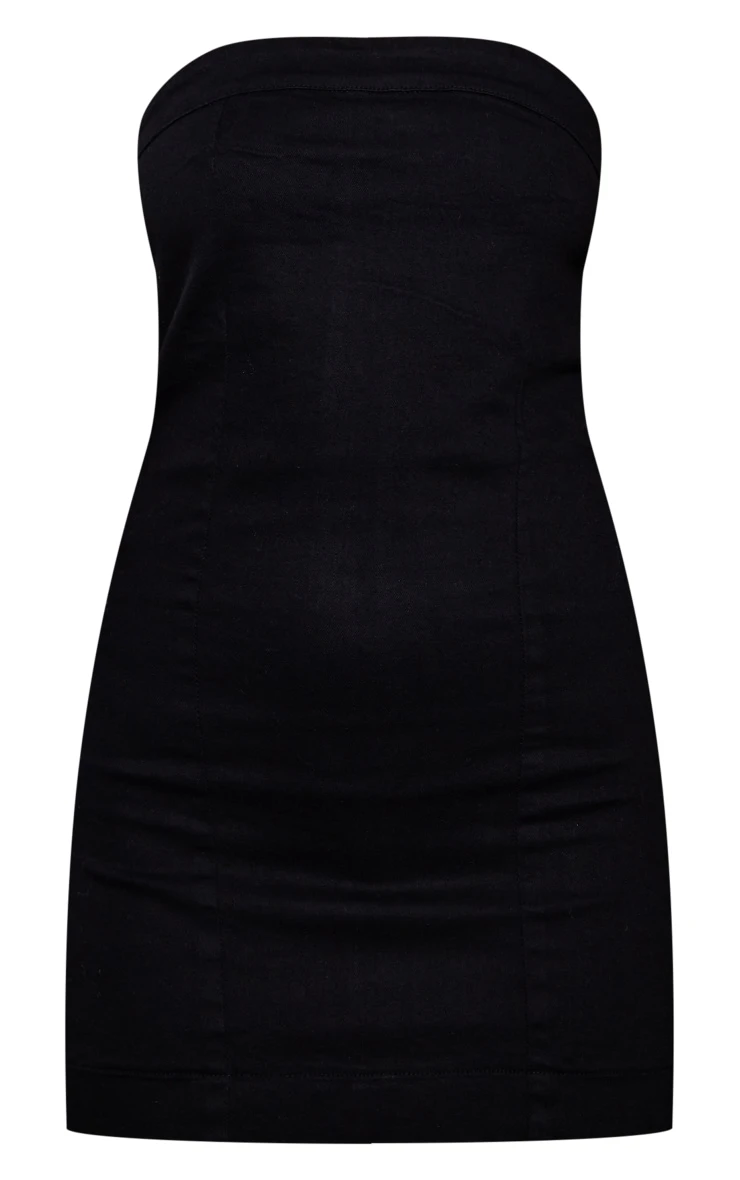 say hello to this season’s newest staple doll. This mini dress features a black denim material with a bandeau material and a zip-fastening. Team with black heeled mules and a faux leather jacket to take your look to the next level.