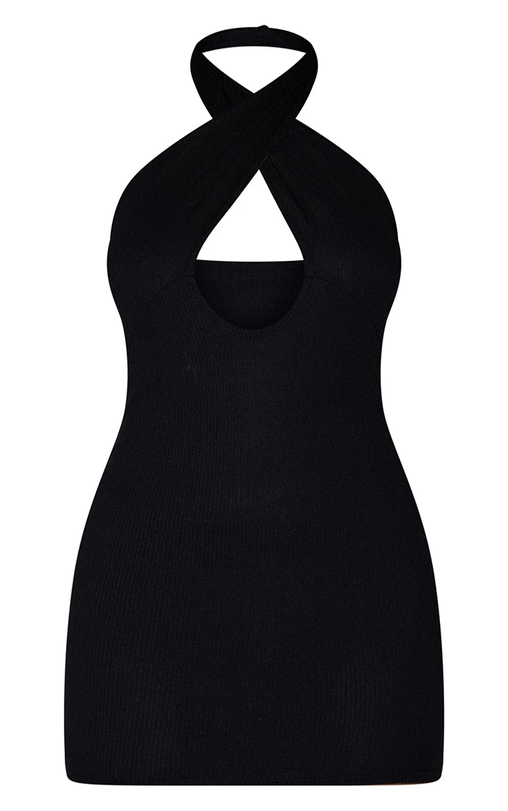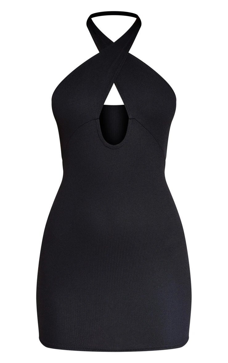 Your weekend look is finally sorted with this figure-flattering dress. Featuring a black rib material with a cross neck design and cut out detailing. Just add statement accessories and heeled boots for a look that will get you noticed doll.