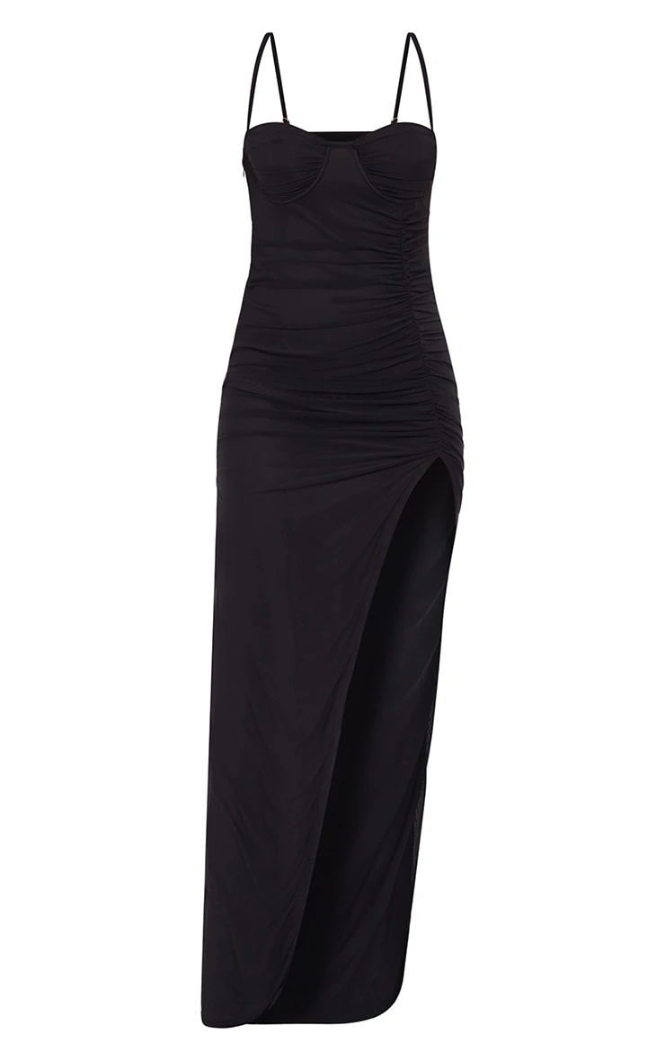 This unreal maxi dress is sure to get you noticed this season doll. Featuring a black mesh material with cup detailing and a thigh-high split, what’s not to love? Wear with strappy heels and minimal accessories to make sure all eyes are on you.