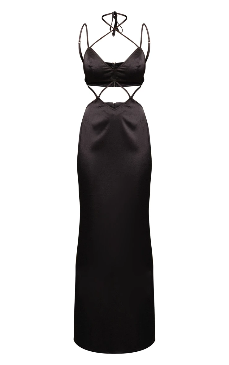 Look all kinds of glam in this black satin cross waist detail strappy maxi dress. Brought to you in a black satin material with a cross waist, a strappy design and a maxi length. This women’s maxi dress is the key to your weekend wardrobe doll. Pair this with your dreamy high heels and accessories for a flawless finish.