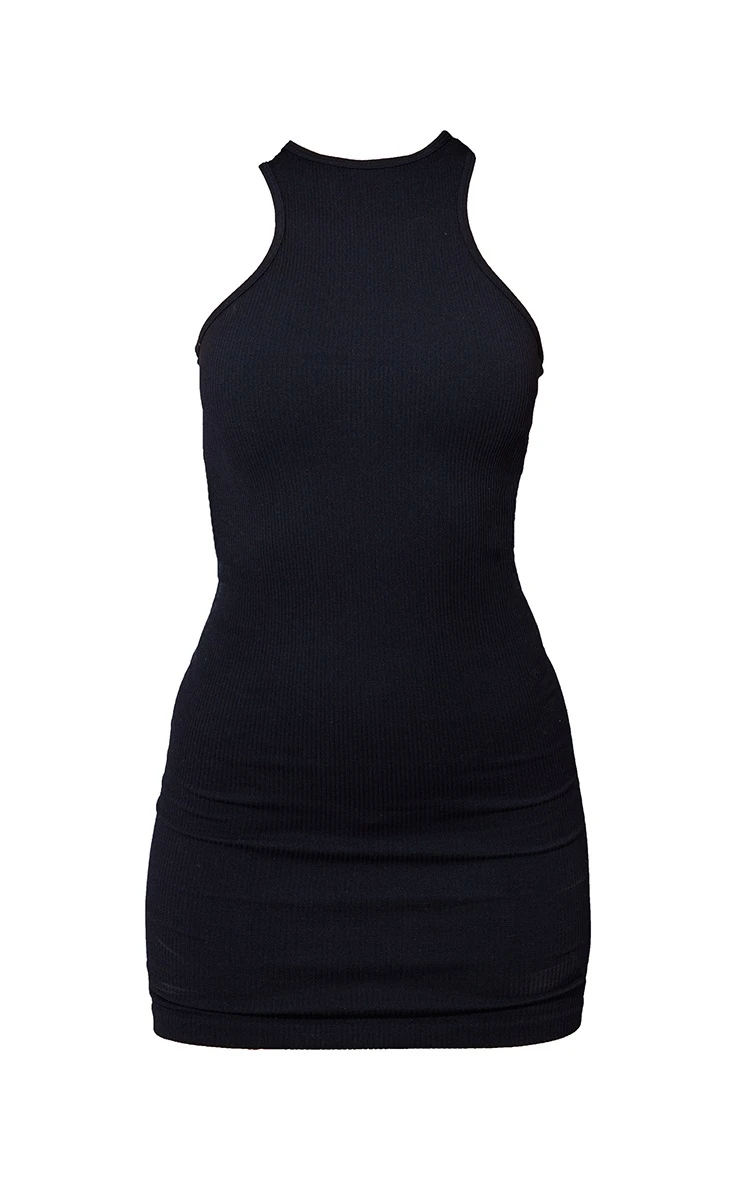 This figure-flattering dress is sure to take your off-duty look to the next level doll. Featuring a black snatched rib material with a racer neck design and a bodycon fit. Just add knee length boots for an effortless everyday fit.