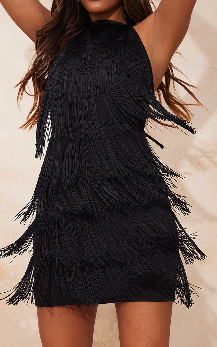 Get ready to wow in this dreamy bodycon dress. Featuring a halter neckline with insane tassel detailing, style this up for your Saturday night out or for when your partying in the fields.
