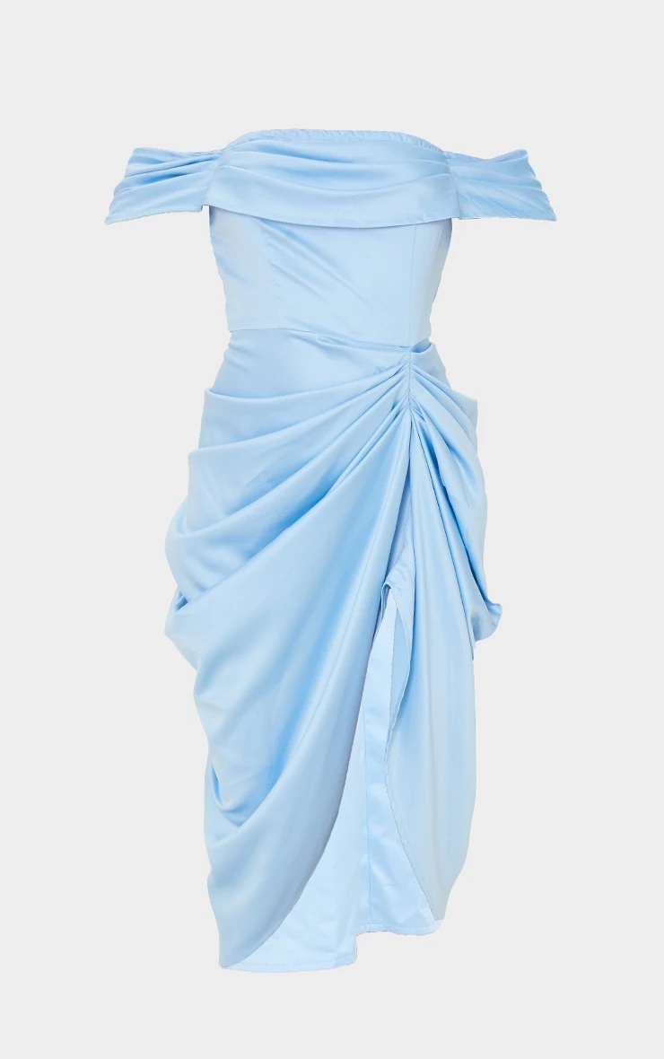 Got an important occasion pencilled into your diary? Then this dress is for you doll. Featuring a blue satin material with a bardot neckline and a midi length. Just add clear strap heels and a statement clutch for a look that will have all eyes on you.