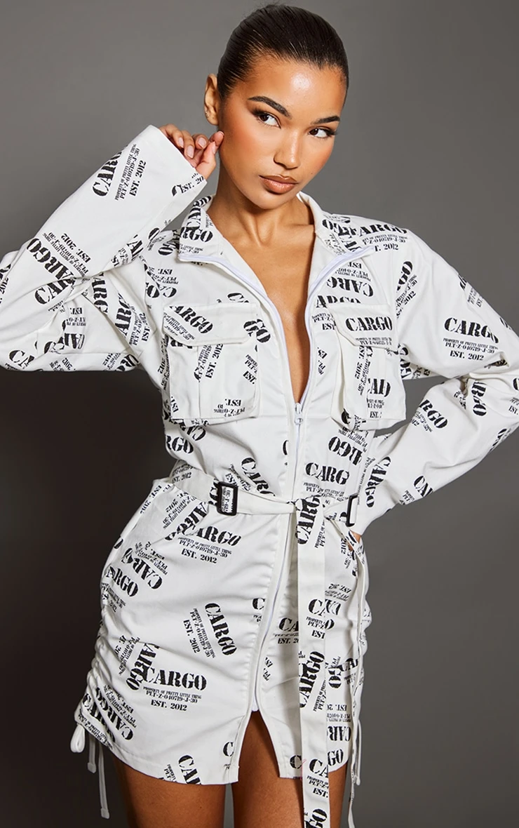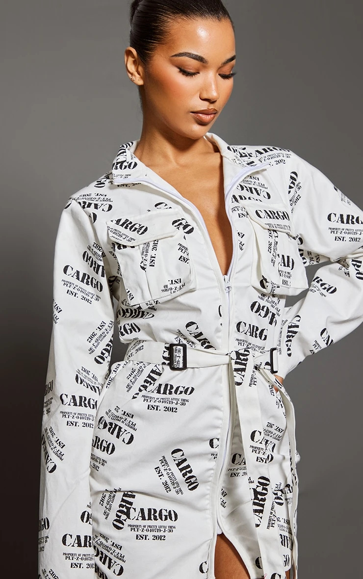 Get ready to steal the show with this eye-catching dress. Featuring a cream material with a ‘Cargo’ print, ruched pockets, zip fastening and a figure-flattering fit, we are in love. Max out the look with high heels and accessories for a head-turning combo.