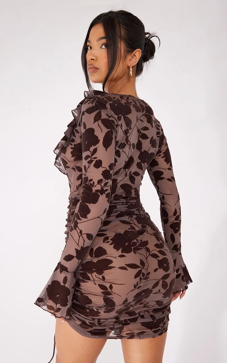 Add some of this seasons must-have trends into your weekend look with this bodycon dress. Featuring a dark chocolate floral flocked material with a frill design and a figure-hugging fit, what’s not to love? Add your dreamy high heels and chunky gold hoops for a combo we can’t get enough of.