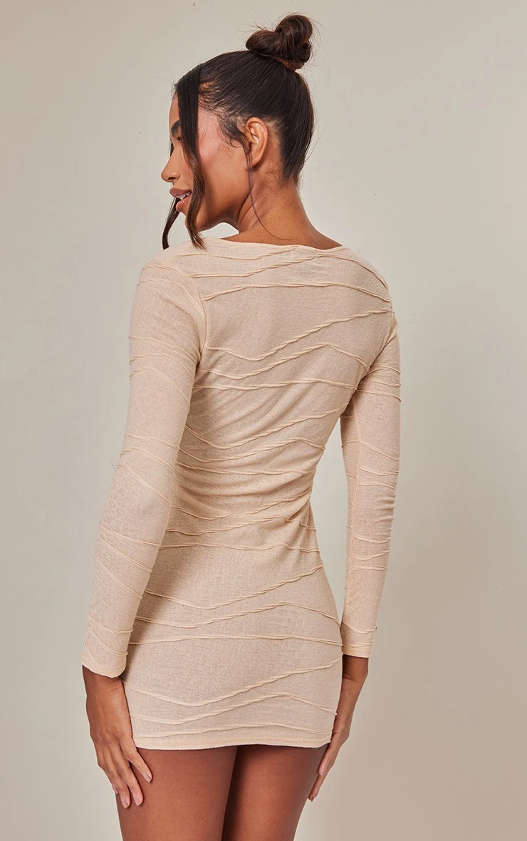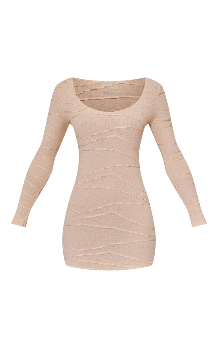 Level up your collection with this unreal bodycon dress. Featuring a desert sand textured material with a scoop neck, long sleeves and a figure-flattering fit, we are in love. Pair with gold accessories, comfy boots and a trench coat to seal the deal.