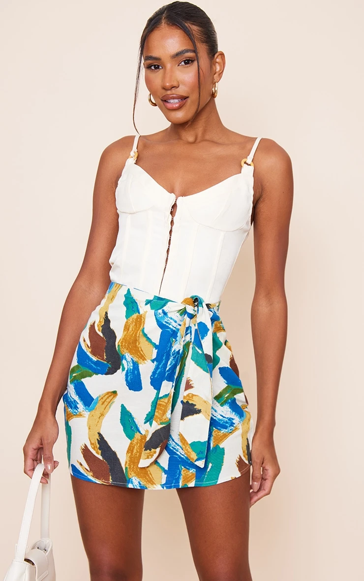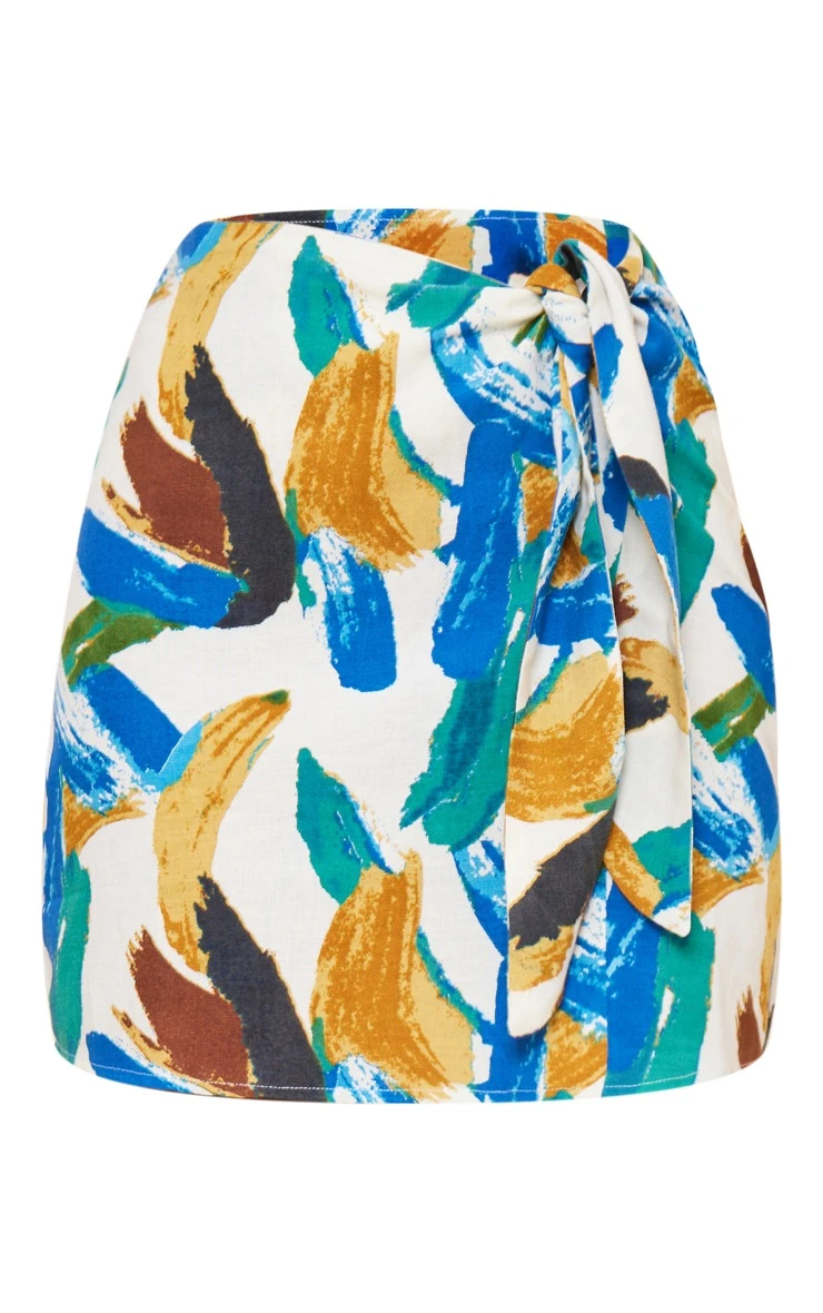 We’re all about prints this season and this multi abstract print linen look knot front mini skirt is the ultimate must-have to take your look to a whole new level. It features an abstract print linen look material with a knot front design and a mini length, how could you not be in love? Style this dreamy mini skirt with a corset top, strappy heels and a shoulder bag for a look that is sure to show off your glow.