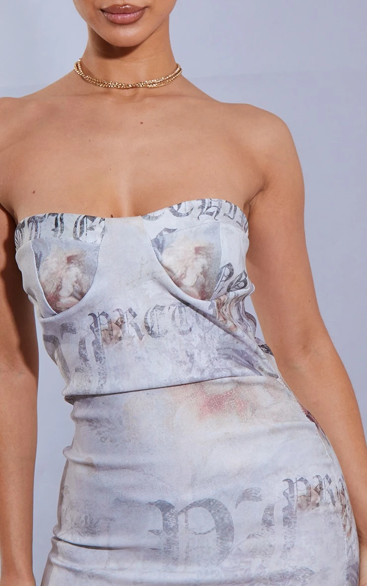 Your weekend outfit is finally sorted with this petite grey vintage floral corset detail fitted bodycon dress. This dress is made from a grey hue with a vintage floral design, perfect for your evening looks. With a bodycon fit, what more could you want doll? Team with some clear heels and minimal accessories to take this insta-worthy look to new heights.