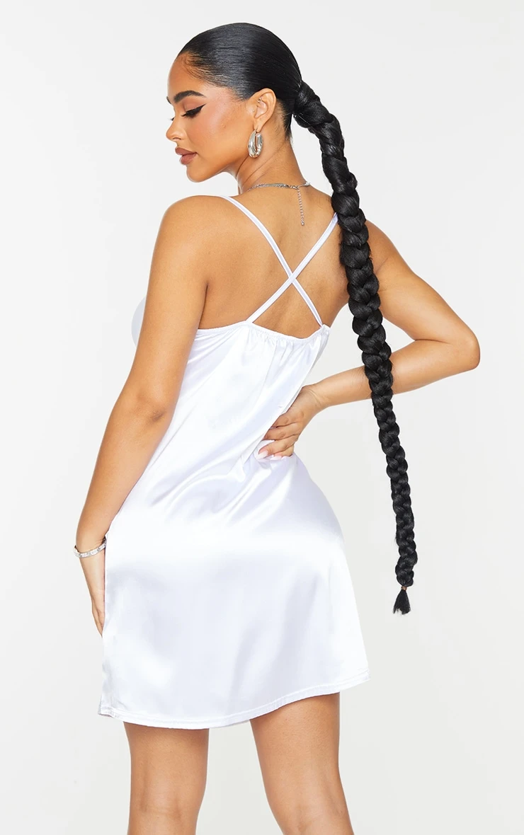 Got a special event coming up? Then this dress is a must-have for you doll. Featuring a white satin material with a cowl neckline and shift fit, we’re in love. Just add strappy heels and hoop earrings to elevate the look even further.