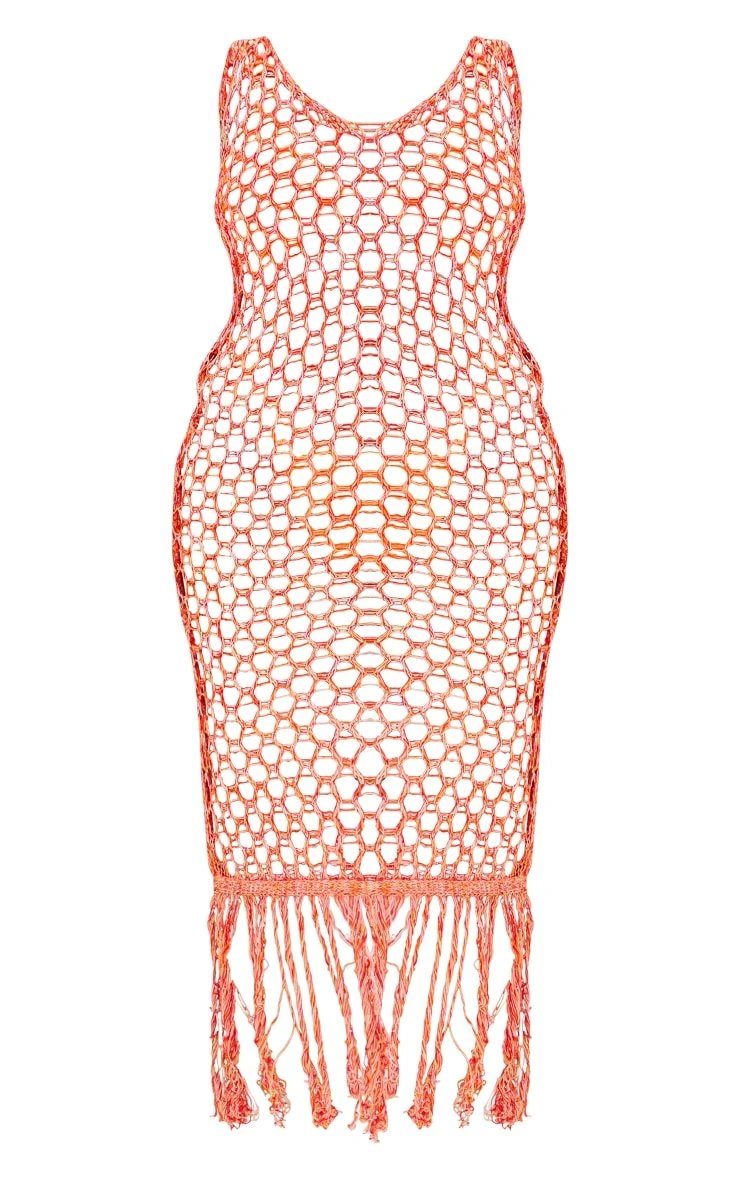 Show off your shape this season in this plus orange fishnet knitted maxi dress. This unreal dress is brought to in an orange knitted material with a fishnet design that will have all eyes on you wherever you go. With a maxi length that will have you feeling confident, you won’t be able to resist. Simply style with your fave bikini and your fave gold hoops to complete the look we are loving.