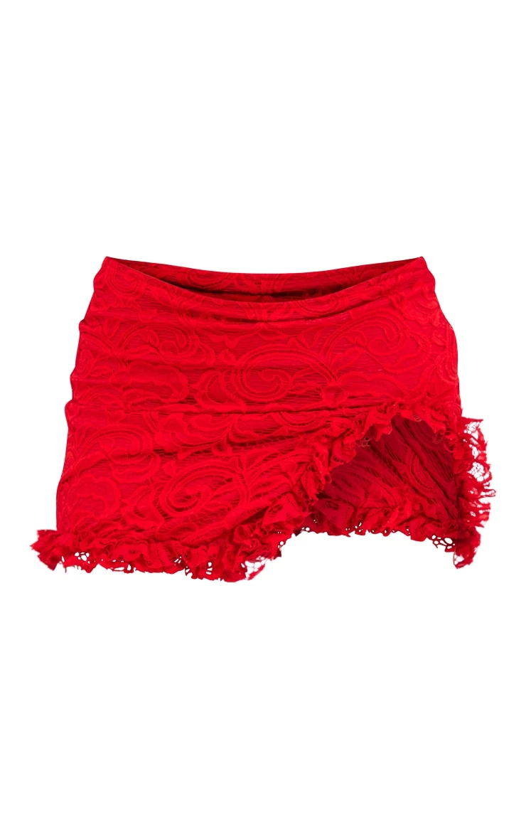 Make a bright and bold statement with this skirt doll. Featuring a red woven material with a sheer lace design and mini length, we’re obsessed. Wear with the matching corset, high heels and accessories to complete the look.