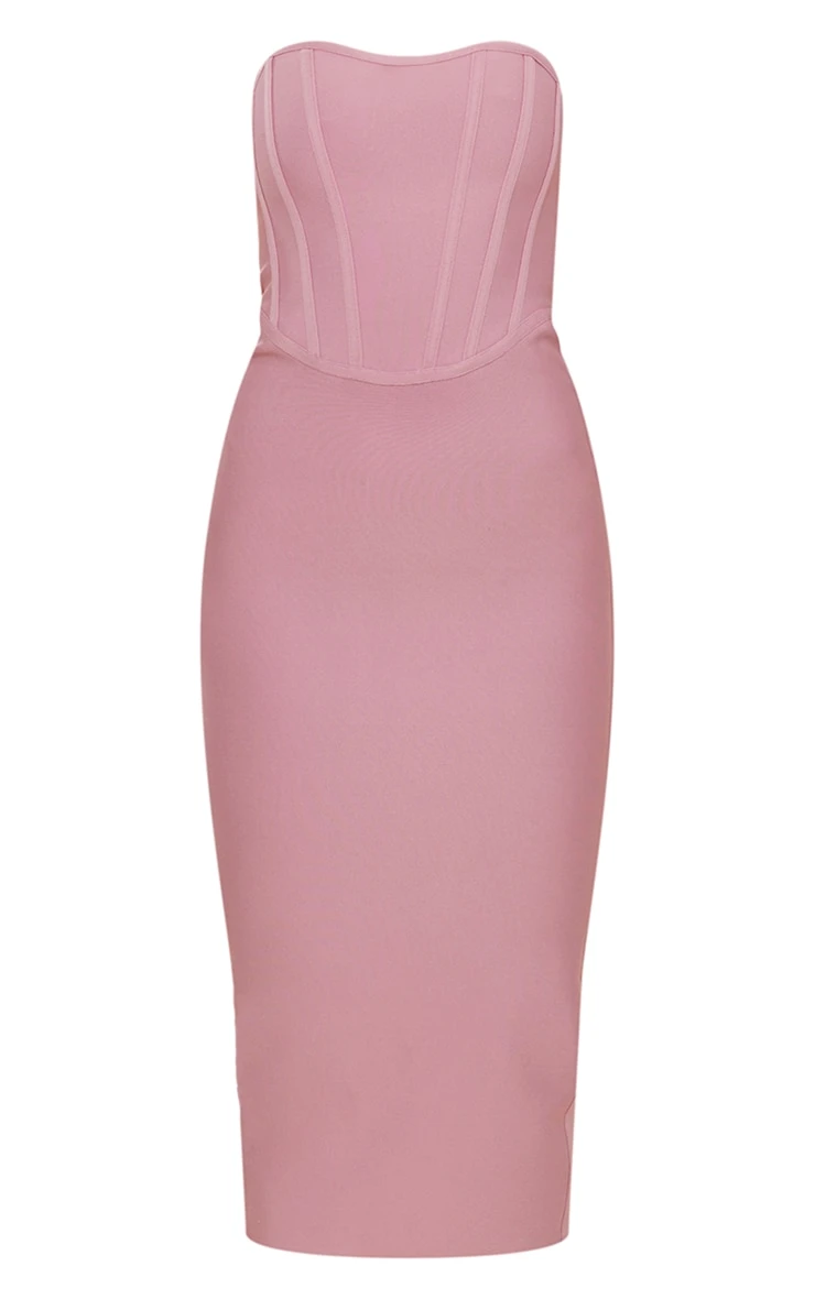 This rose corset detail bandeau bandage midaxi dress is perfect for all your upcoming events, you’re sure to stand out from the crowd doll. This dress features a rose hue bandage material with a figure-worshipping corset detail that is sure to show off your shape and a flattering midaxi length, how could you not be in love? Wear with clear slip-on heels and a mini bag for a flawless finish.