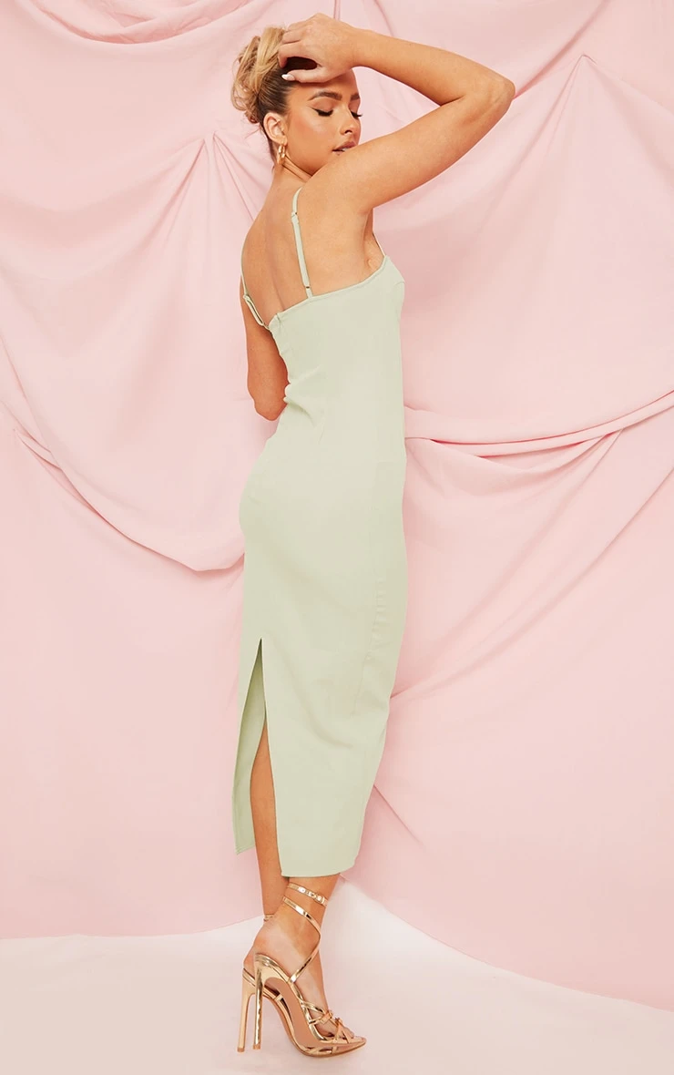 Have all eyes on you this season with this sage green woven corset detail strappy midaxi dress. This dress is brought to you in a sage green hue for an effortlessly chic look that will have heads turning all season and beyond. With a woven material and a corset detail, you will be showing off your figure in all the right places. Team this unreal dress with some of your go-to heels, a statement bag and some gold hoops to complete the look we are loving.