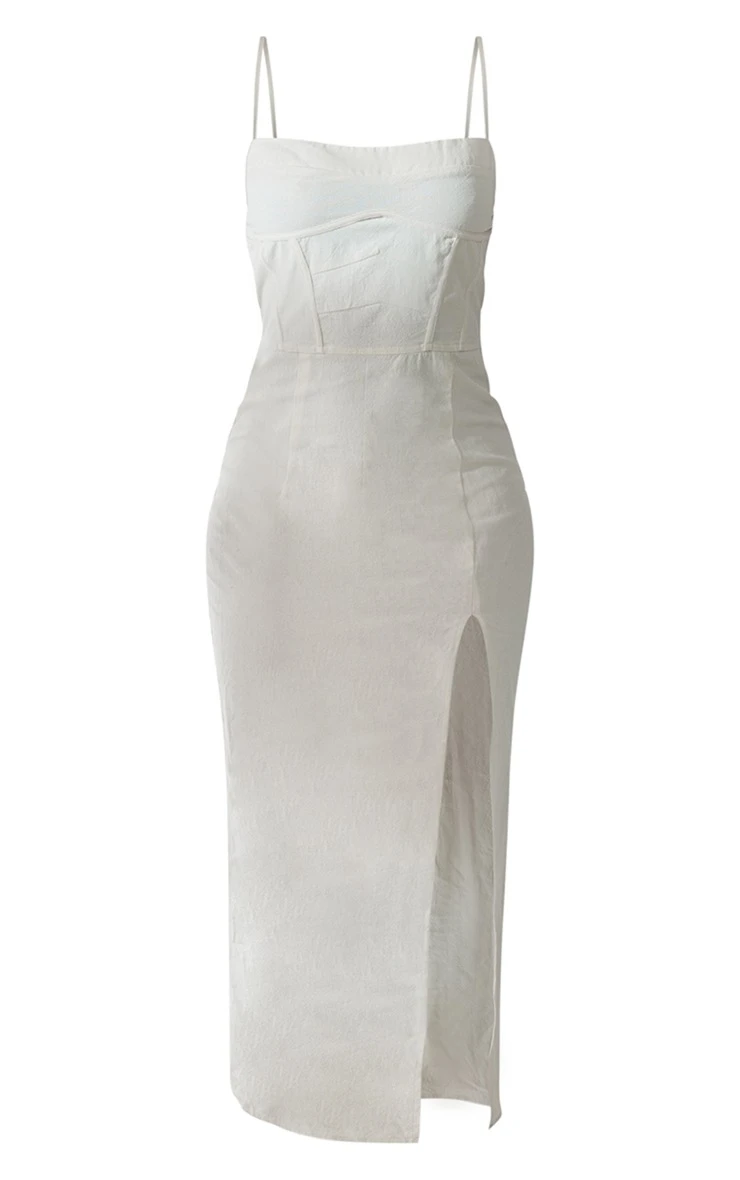 Make heads turn in this sand corset detail side split strappy midaxi dress. Brought to you in a sand hue material with a flattering corset fit, a midaxi length and side split detailing for an extra touch of glam, we just can’t get enough. Style this strappy dress with clear strap heels and simple accessories for an effortlessly chic look that is perfect for your next occasion doll.