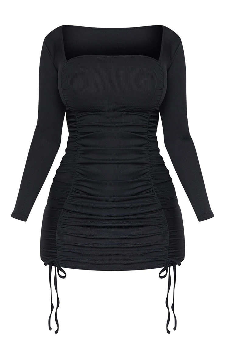 A little black dress is essential in every doll’s wardrobe, and we are loving this style. Featuring a black material with a square neckline and ruched front detailing, we are obsessed. For a head-to-toe glam look, style with strappy heels and a mini bag.