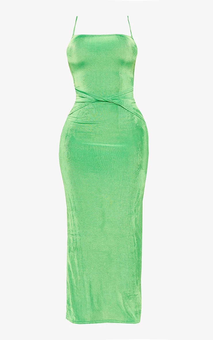Add some luxe feels to your weekend wardrobe with this maxi dress doll. Featuring an emerald green slinky material with a strappy design and maxi length how can you say no? To make sure you get noticed, team with a mini bag and heels.
