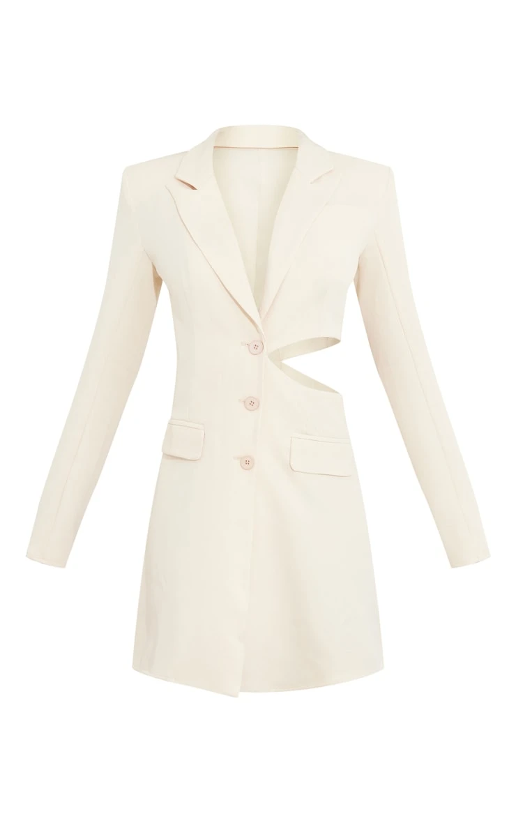 This season a blazer dress is essential and we are loving this style. Featuring an off white hue material with a cutout design and a flattering fit. Team with some clear heels and a cute bag to complete this effortlessly chic look.