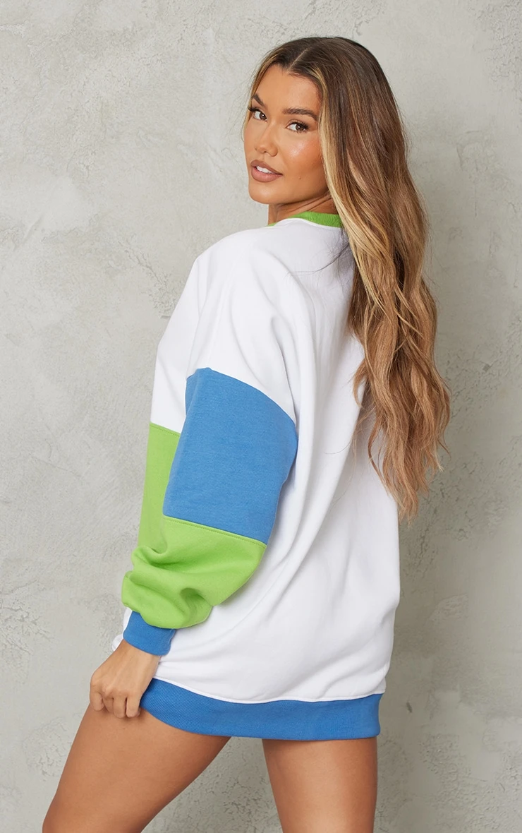 Add a little edge to your outfit of the day with this dress. Featuring a white material with a block color design and an oversized fit. Team with chunky kicks and simple accessories for a fresh finish.