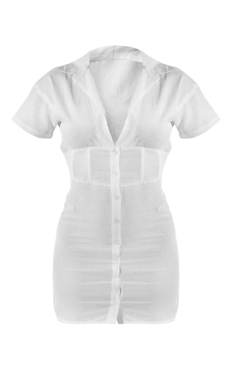 Enter the new season in style with this white short sleeve fitted waist linen look shirt dress. With a chic shirt style and a luxe white linen look feel, we are in love. It’s figure-flattering fitted style is sure to show off your shape in all the right places doll. For an effortless everyday ‘fit, just add fresh kicks and simple accessories and let the dress do the talking.